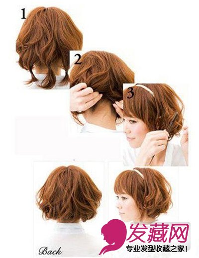 打造步骤1. 将头发分成三股分别用黑色橡皮筋绑起来。2. 用发夹把橡皮筋下面的部分往内藏,制造出盘发的效果。3. 加上珍珠头箍后,用细梳子把头发弄蓬松。