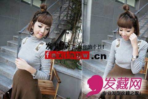 深厚的齐刘海搭配顶上的小丸子,真是可爱又甜美。