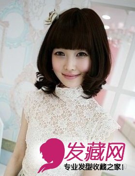 淑女气质的这款卷发波波头发型,特别顺直的前额平刘海和头发,在发尾使用像花朵般的卷发发型设计,使女生发型淑女感觉更加强烈,很是美丽的一款bobo头发型哟!