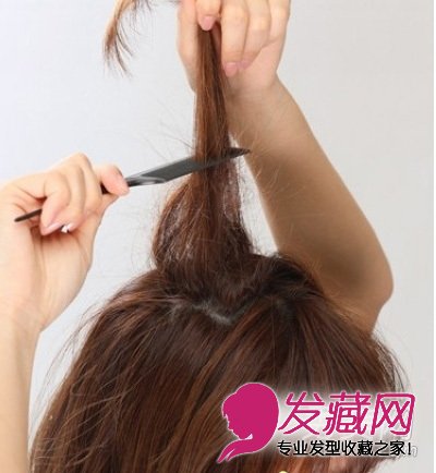步骤一:逆向刮发。取头顶的发束,用梳子逆向挂松,营造蓬松感。