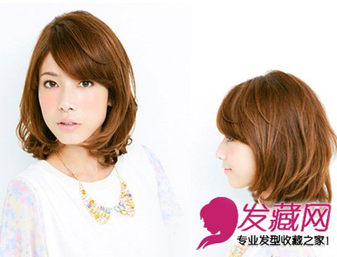 发型点评:脸蛋圆圆的MM选择这款发型更显可爱呆萌。优雅的斜刘海衬显出迷人的双眼,发束蓬松内扣,修饰脸型的同时还能让头型更显饱满。