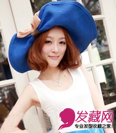 这款中分短发可是气质十足呢!搭配发尾的卷度,很好的达到了内收的效果,修出了精致小脸,大大的蓝色帽子更显得时尚潮流。