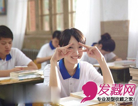 周冬雨在《同桌的你》乖巧的中长发的造型很是学生气,斜分的刘海搭配低马尾,简单利落,尽显单纯活泼的学生妹形象。