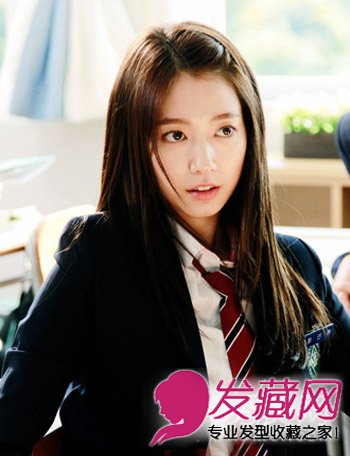 最热门韩剧《匹诺曹》中,朴信惠饰演的崔仁荷高中生造型,长直发内扣甜美乖巧,侧分的刘海用发卡别起来更显得清爽活力的学妹范。