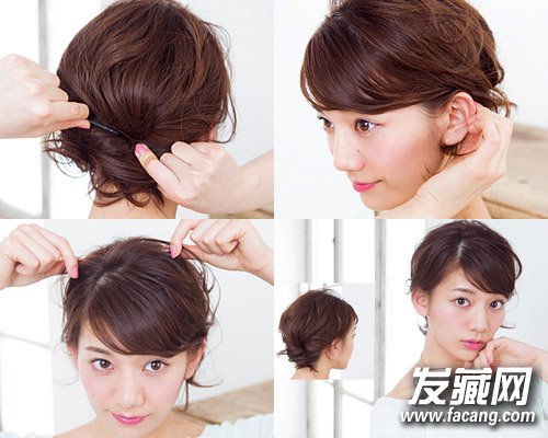 step 1:头发全部集中与后面脑勺位置,扭转之后向上用黑色发卡固定。