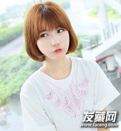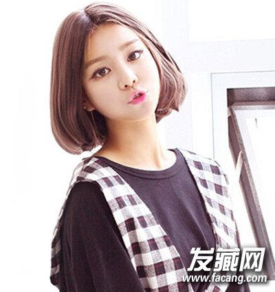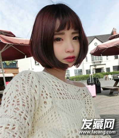 这款韩式内扣波波头发型看起来甜美又不失女人味,再加上清新低调的深栗色染发发色和齐刘海形式的内扣波波头,可以让美眉更有气质,也可以增添女生十足的活泼感。