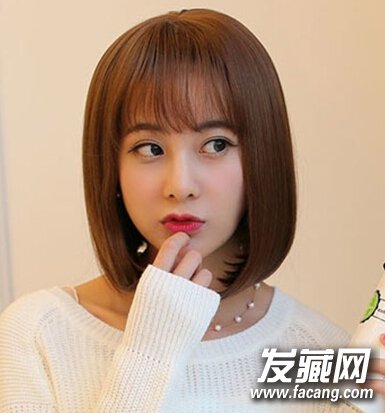 这是一款较厚的空气直刘海,不仅可以遮盖额头线条的不足,而且还可以打造发型轻盈又不失质感的感觉,发尾至耳垂做成内扣不仅可以提拉脖子的线条,而且还可以把下巴修饰得更加小巧。