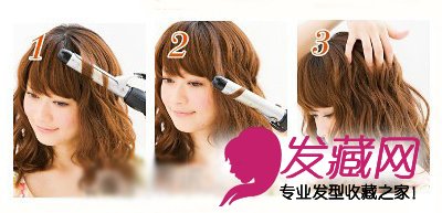 2、烫发棒外翻,夹发尾1回转,往后卷。反复进行这种卷发方式。