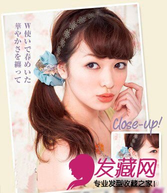 看似普通的侧马尾,加上花朵发饰的点缀显得很少女。