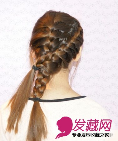 第五步编至脑后位置就OK了,先用发夹固定。