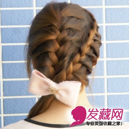 第七步扎好之后再配上美美的蝴蝶结发夹就大功告成咯,怎么样?很淑女吧,超简单易学,MM们都可以尝试一下哦!