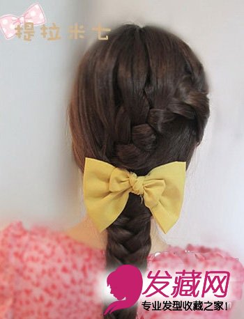 用皮筋固定好发尾,搭配自己喜欢的发饰就可以。