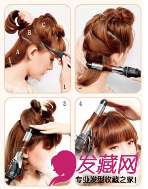B区头发做45 。倾斜的纵外卷,一直卷至发根处