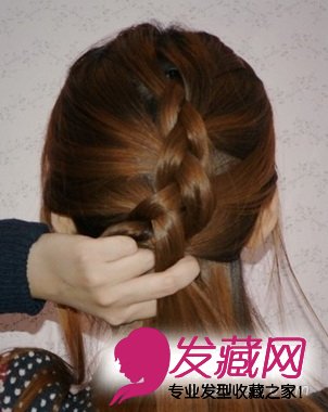 按普通反麻花辫子的方法编一次,然后再取一股续编上次三股其中的一股合成一股,始终保持三股头发,按此类推,不断按三股先后顺序续接地编。