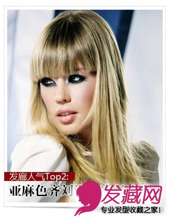 发廊人气top2:齐刘海x亚麻色层次长直发