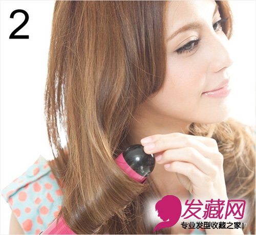 电卷棒夹住发束中段,向内卷耳下位置,松开后将卷度拨松。