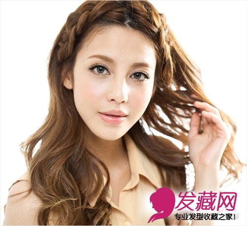 头发中分后,将两侧前发顺着发流向下编入,做出头顶的方形轮廓,搭配露额造型,脸意外地拉长!虽说露出较大的脸部面积,但却意外的有成熟小脸的感觉。