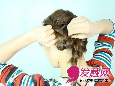 5.左边的也编完了,那就先把左边的头发卷起来,再用右边的头发把左边的发髻包围一圈,再用发夹固定。
