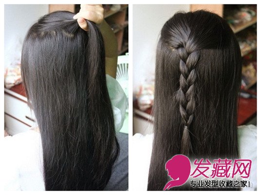 把头顶上方的头发分出一束,把分出的发束编成麻花辫。