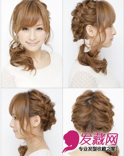 这款编发其实是改编自常见的双蜈蚣辫,却摈弃了双蜈蚣辫本身的呆板, 柔美的卷发打造出编发发型时同样呈现出弯曲的线条,微卷的柔顺偏分刘海发型随性地散在额头上形成弯曲的弧形,两侧自然散落下来的卷发发束,增加了淑女气质,低位侧扎的马尾配上白色的蕾丝发饰更是别有一番味道。