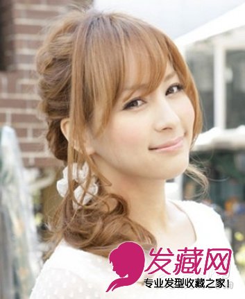 甜美的卷发编发和熟女的白色雪纺波点服饰相搭配,清新秀丽感马上凸显出来,非常清新亮眼。