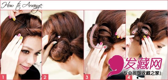 3、扭转的发束于侧边缠绕为包头,小黑夹插入固定即可