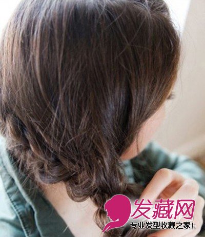 法式麻花辫步骤六:发辫发尾处留出一部分头发,不要编到发辫里面去,留着备用。