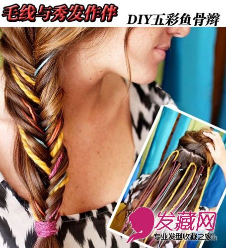 不知道大家是否还记得2013国际时装周T台上model们的鱼骨编发吗,是不是自己也想尝试呢,不要着急,发藏小编为你找到了编发的详解步骤喔,另外还有一个新的创意,你肯定想像不到,毛线也可以加入秀发中,很有挑染效果喔,超fashion!赶快来学习一下吧!