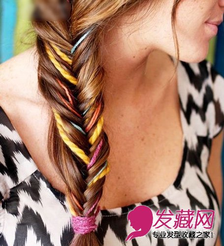 DIY创意毛线五彩鱼骨辫编发教程