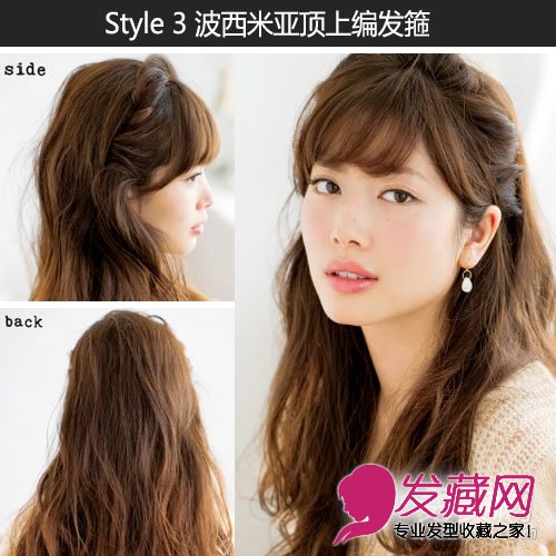 波西米亚风的随性浪漫,相信每个女孩子都喜欢。总觉得要波西米亚长辫子很难编,很花时间?其实不然,5分钟内完成这款顶上编发,绝对做得到。