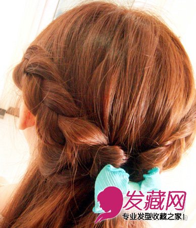 第三步:左侧也是同理编法。这个编发方法的要点就是要把每股头发往下压,这样效果就出来了。
