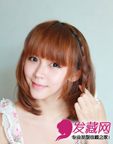 从头顶一侧挑出一束头发,往下麻花辫辫