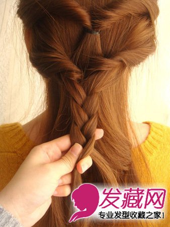将最下面扎好的辫子两侧,各取出一股,与扎好的辫子编成麻花辫