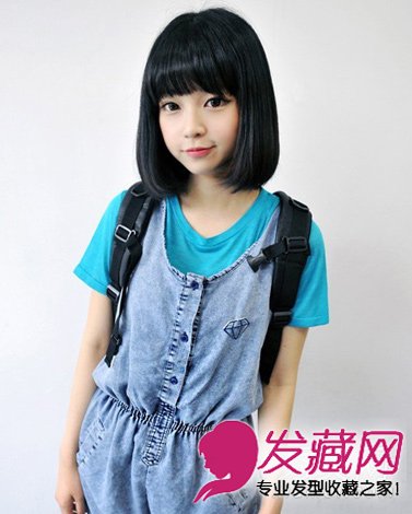 这一款中短发的发型是非常显瘦的哦!显瘦重点之一,就是蓬松内扣的齐刘海,可以起到遮脸的作用。显瘦重点二就是发型的长度,正好可以包裹整个脸。并且发尾内扣的弧度,也是正好到下巴的地方,也是可以起到修饰作用的。