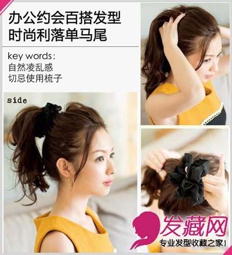只需要留下细小零落的一束发丝,用十个手指梳理全部头发,并把剩余头发全部置于手中,集中固定在脑后稍高的位置。切忌使用发梳哦,手指能够让头发稍显凌乱的同时更加自然时尚哦。