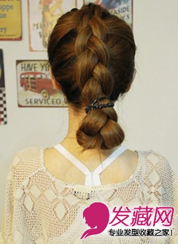 如图所示,用皮筋固定上步的头发,刚好扎在里面头发的发根处。