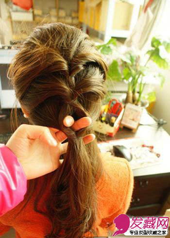 步骤1:先以头顶为中心,将左右两边各分出一股头发,然后将两股头发合并在一起,每一股头发中间保留一点缝隙,顺着往下里。