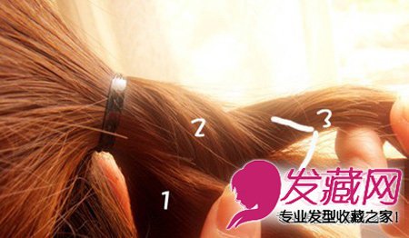 从扎好的马尾开始编发辫。先将其分成三股,第三股再等分成2股