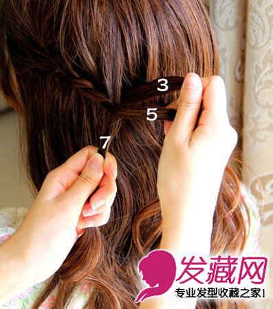 这时候3股在最右边,把3股右边在取一片发片,标记为8股,把3股和8股合二为一,标记为9股