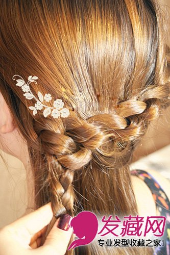 接着,再把剩下的头发按照麻花辫的编法,编到尾部