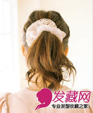 3.留出的2束头发分别扭转至马尾处,用发夹固定,最后戴上喜欢的发圈就完成了!