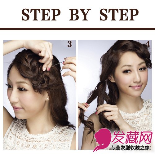 Step3:将发尾往上绕,让辫子在侧脸形成能修饰脸形的弧度,以毛夹固定发尾。