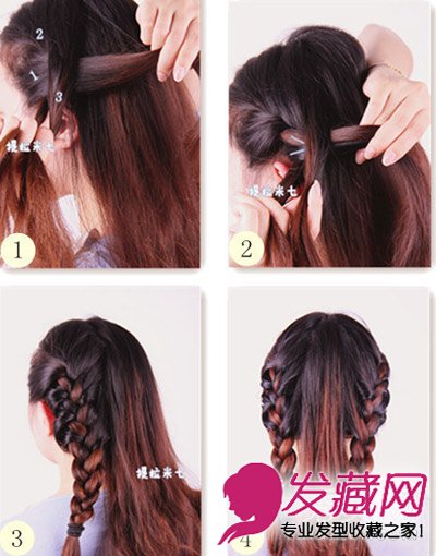 1.头顶头发中分(有留海的话,把留海自然留出来就可以),从一侧开始均匀分三股,三股辫开始。