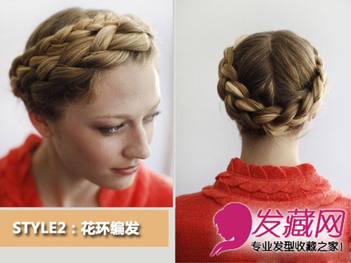 饱满的麻花辫形成一个别致的花环,丰满了头型,让你永驻经典。