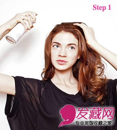 step 1:在头发上喷上定型喷雾。
