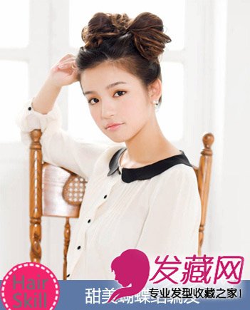 复古风格的卷发发型最容易做造型,扎成甜美的蝴蝶结造型,时髦又甜美。