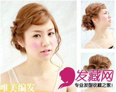 同样将大侧分刘海进行编发,打造出独特的编发盘发造型,酱汁而利落。