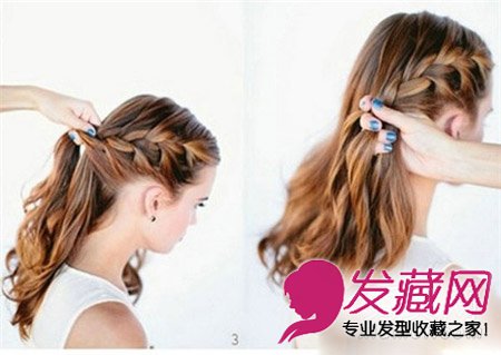 step2:沿着耳朵上面的蜈蚣辫编发要形成侧面的纹理感。