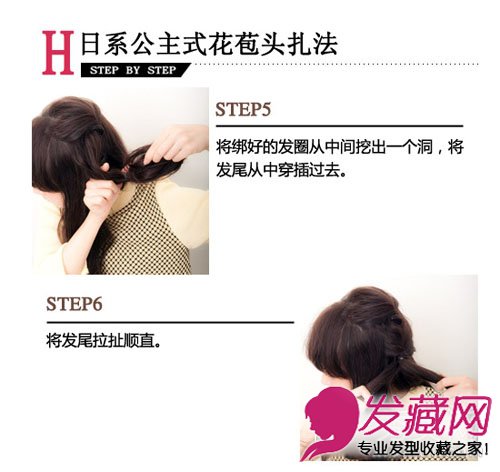 step5:再从绑好的发圈上方挖出一个洞,将发尾从中穿插过去。