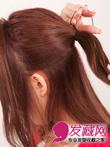 step2将后面的头发分为上下两区后上面的头发用发圈扎成公主头。